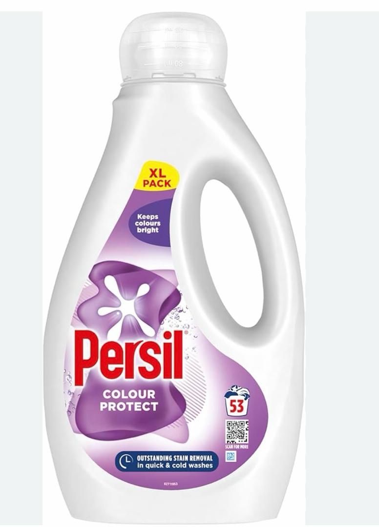 Persil Colour Protect Liquid Laundry Detergent is formulated to deliver outstanding stain removal while preserving the vibrancy of colored fabrics. Designed for quick and cold washes, this XL pack offers long-lasting performance with up to 53 washes per bottle. Its advanced formula penetrates deep into fibers to lift stains while helping to keep colors bright and fresh. Ideal for households seeking reliable cleaning power without compromising fabric care.